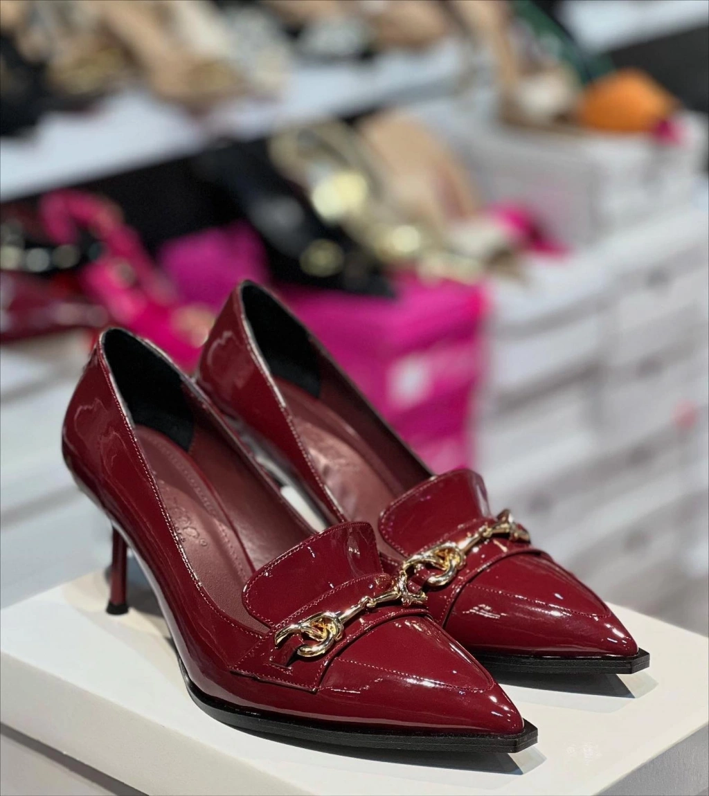 Bordo Rugan Tokalı Topuklu