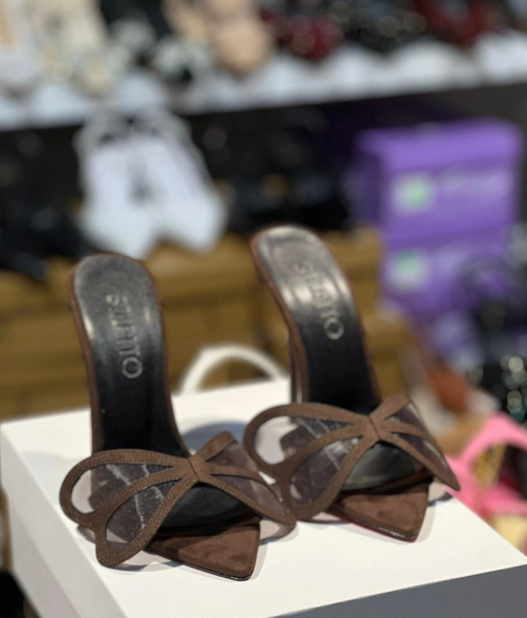 Kahve Süet Kelebek Topuklu Terlik