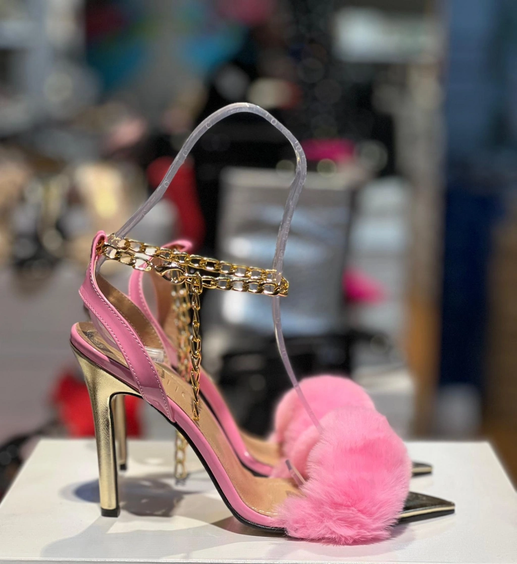 Pembe Peluş Tek Bant Topuklu