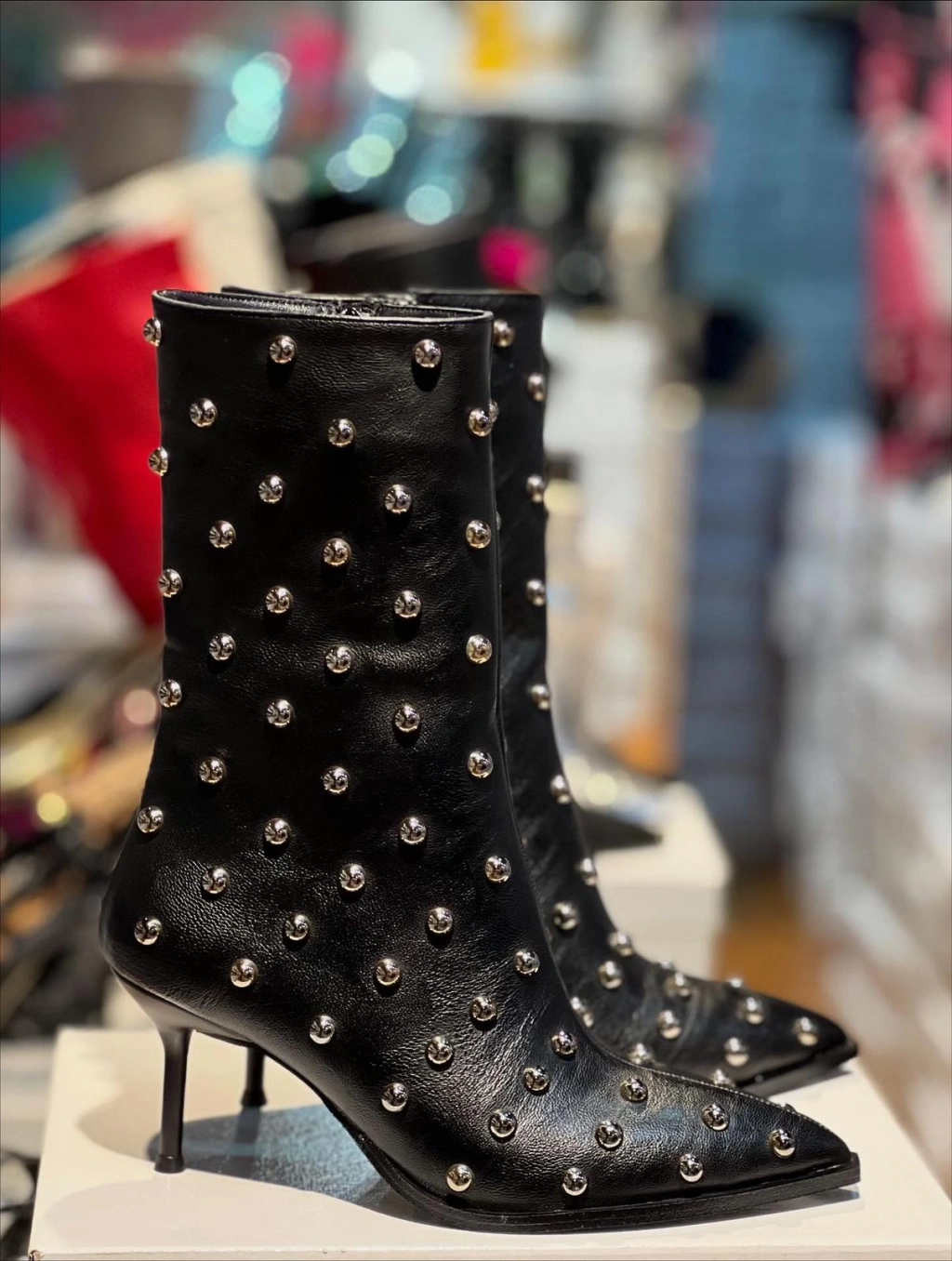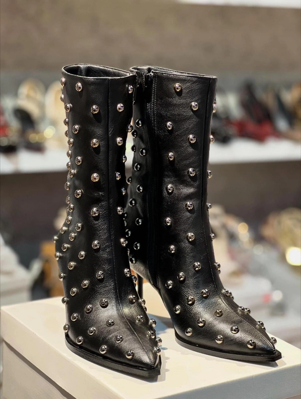 Siyah Deri Demir Boncuklu Botie