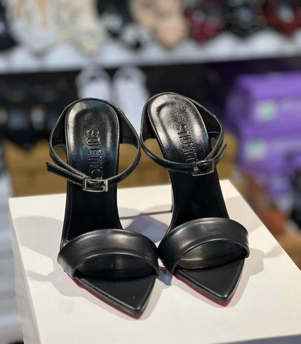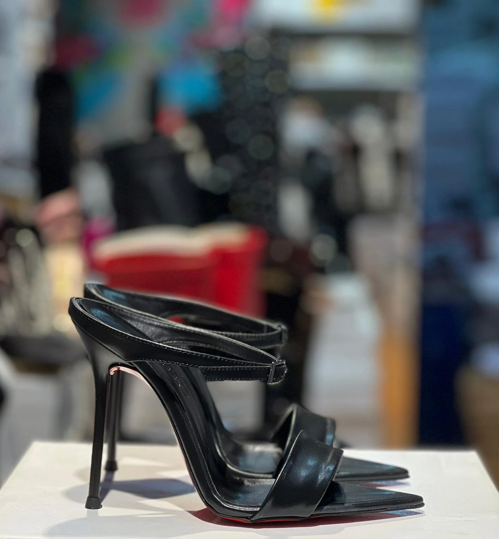 Siyah Deri Tasarım Topuklu Terlik